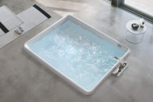 Le concept se développe dans une ligne complète avec les versions à débordement avec diamètre de 190 cm freestanding ou avec quatre modalités d’encastrement.