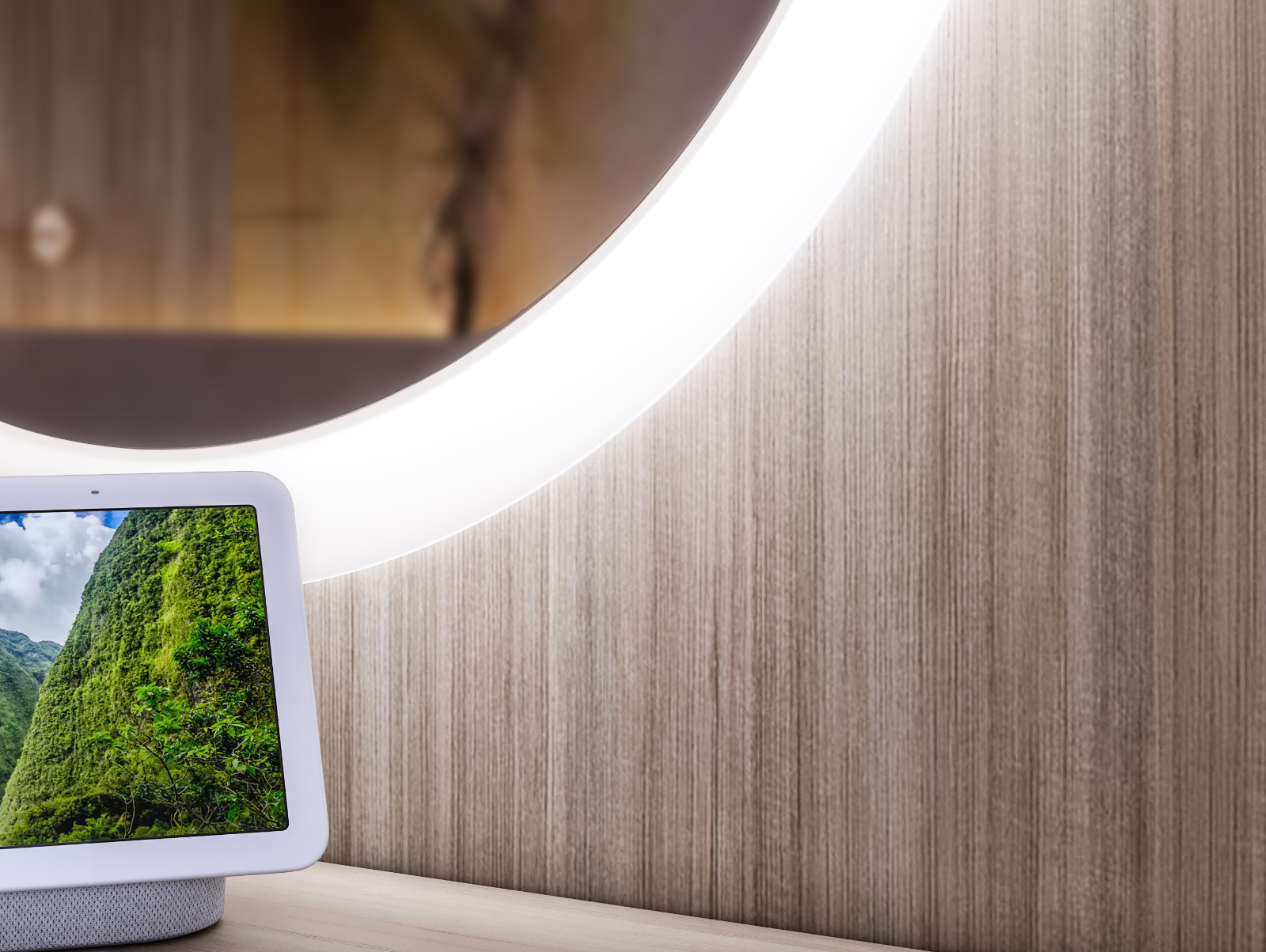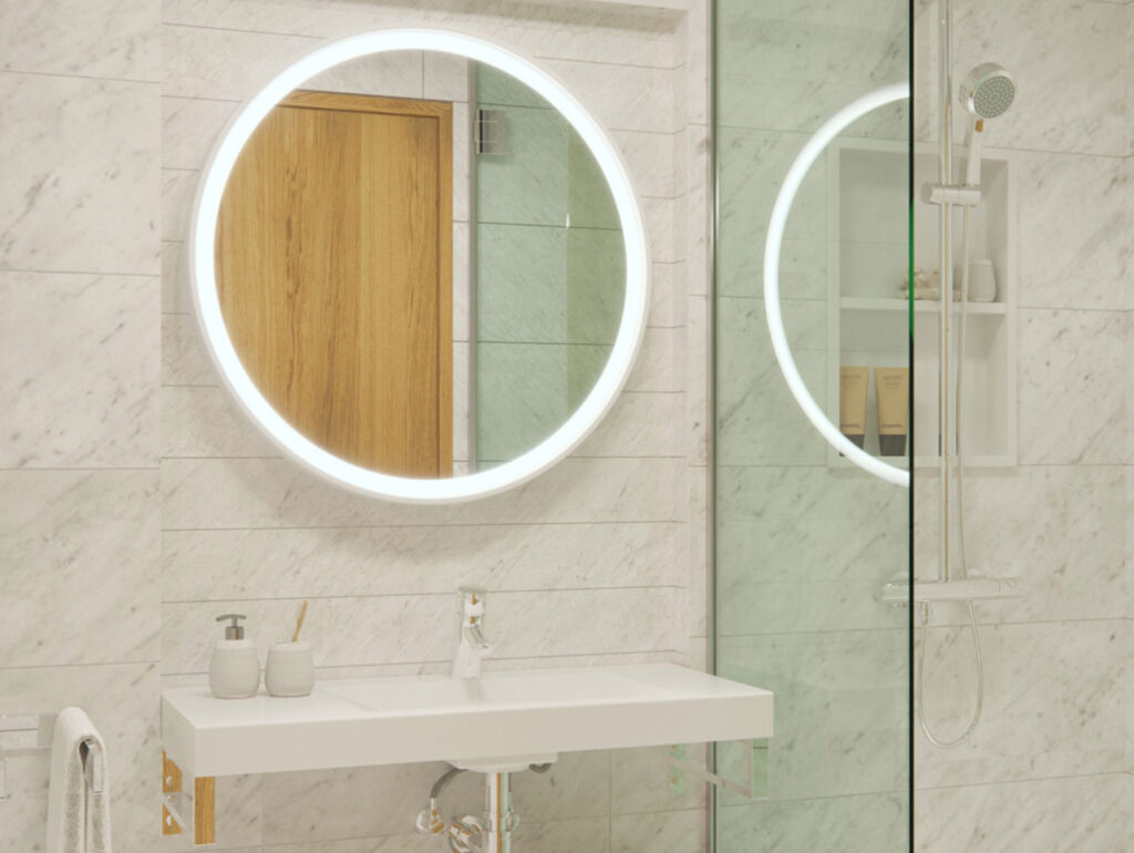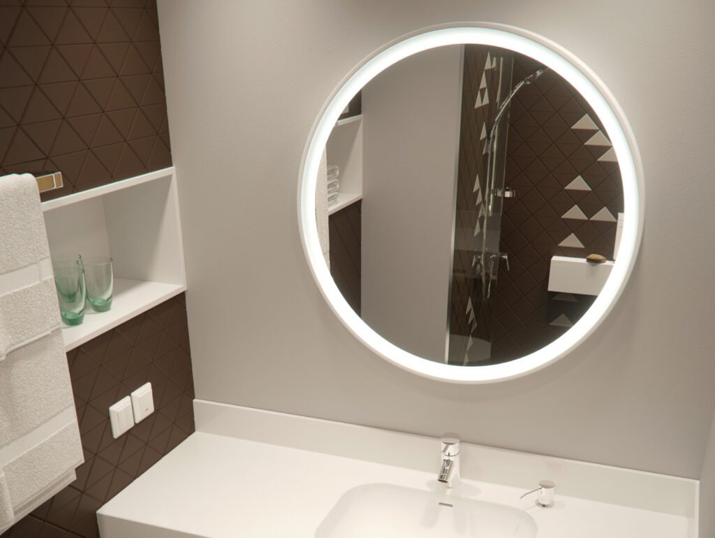 Le miroir Tondo d’Eumar rond et éclairé en LED au design sobre et accueillant.